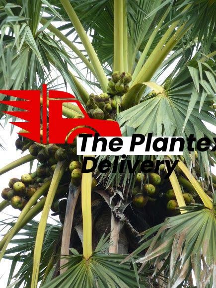 Borassus flabellifer is a robust tree and can reach a height of 30 metres (98 ft). The trunk is grey, robust and ringed with leaf scars; old leaves remain attached to the trunk for several years before falling cleanly. The leaves are fan-shaped and 3 m (9.8 ft) long, with robust black teeth on the petiole margins. Like all Borassus species, B. flabellifer is dioecious with male and female flowers on separate plants. The male flowers are less than 1 cm long and form semi-circular clusters, which are hidden beneath scale-like bracts within the catkin-like inflorescences. In contrast, the female flowers are golfball-sized and solitary, sitting upon the surface of the inflorescence axis. After pollination, these blooms develop into fleshy fruits 15–25 cm wide, each containing 1-3 seeds. The fruits are black to brown with sweet, fibrous pulp and each seed is enclosed within a woody endocarp. Young palmyra seedlings grow slowly, producing only a few leaves each year (establishment phase), but at an as yet undetermined time, they grow rapidly, producing a substantial stem